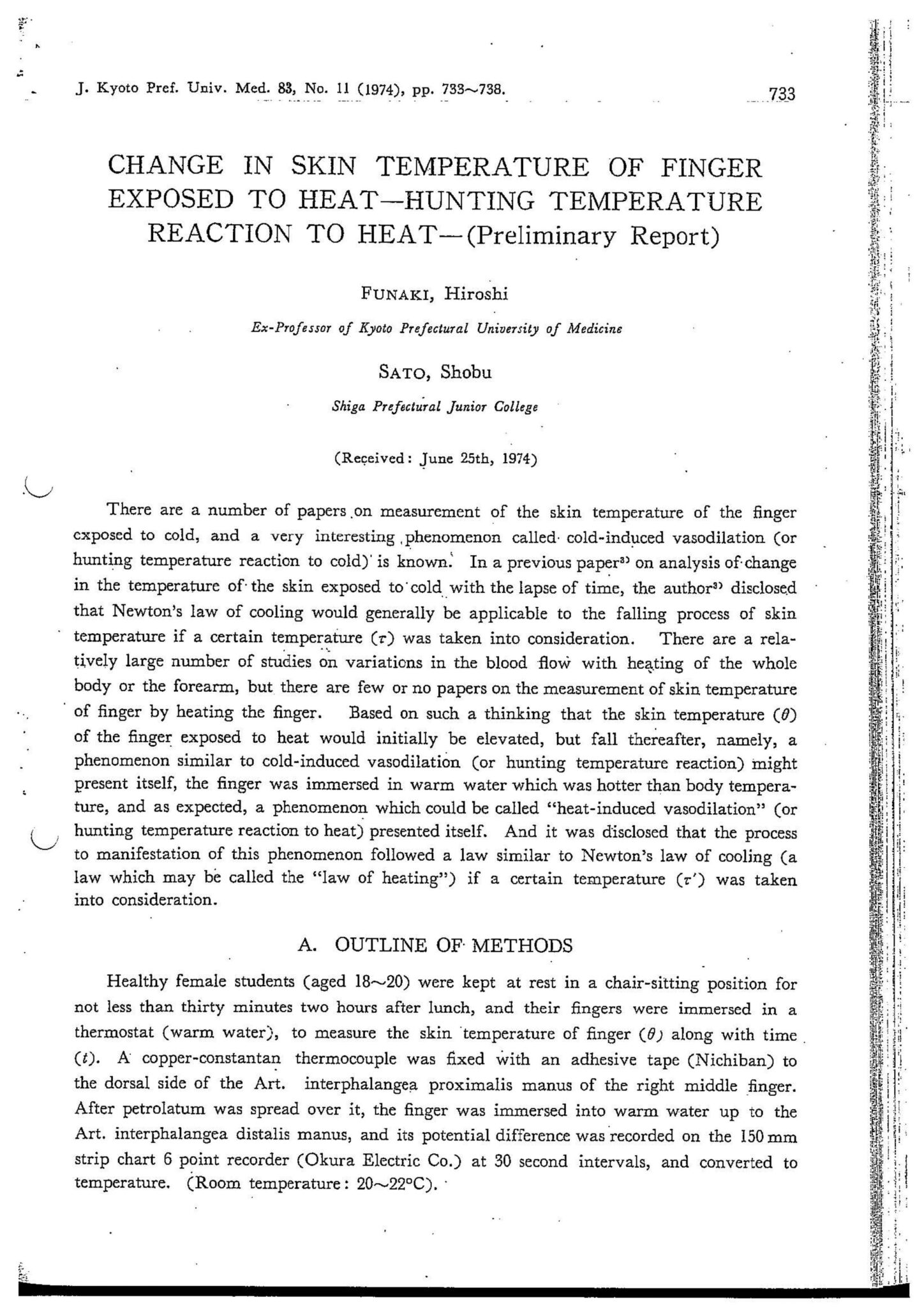 有許多關於測量手指暴露在寒冷環境下皮膚溫度的論文,而且人們已經知道了一個非常有趣的現象,叫做寒冷誘導血管舒張(或寒冷獵熱反應)。